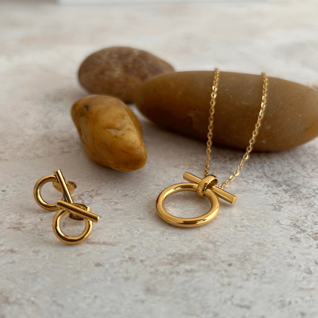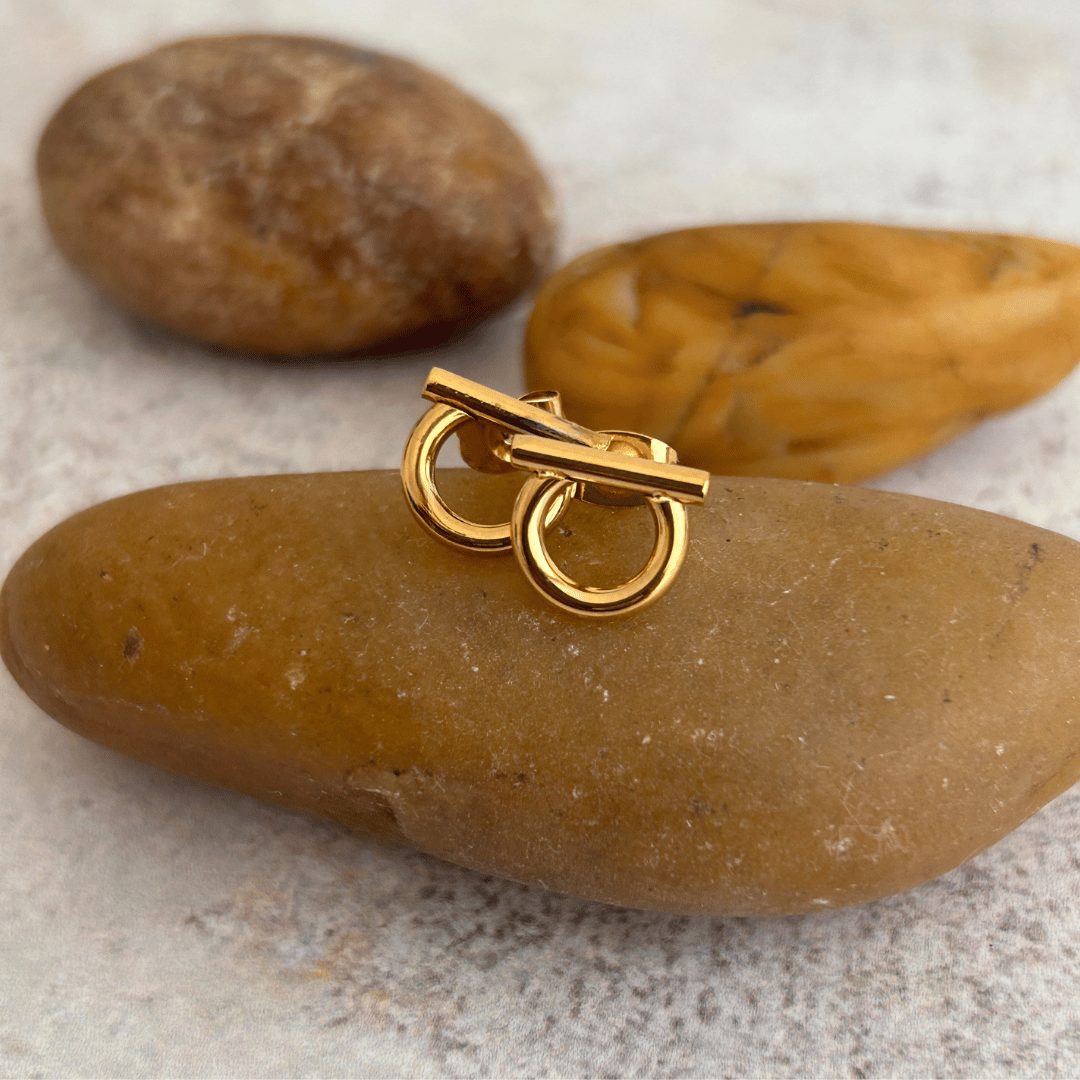 Aretes con diseño de bocado elaborado en acero inoxidable