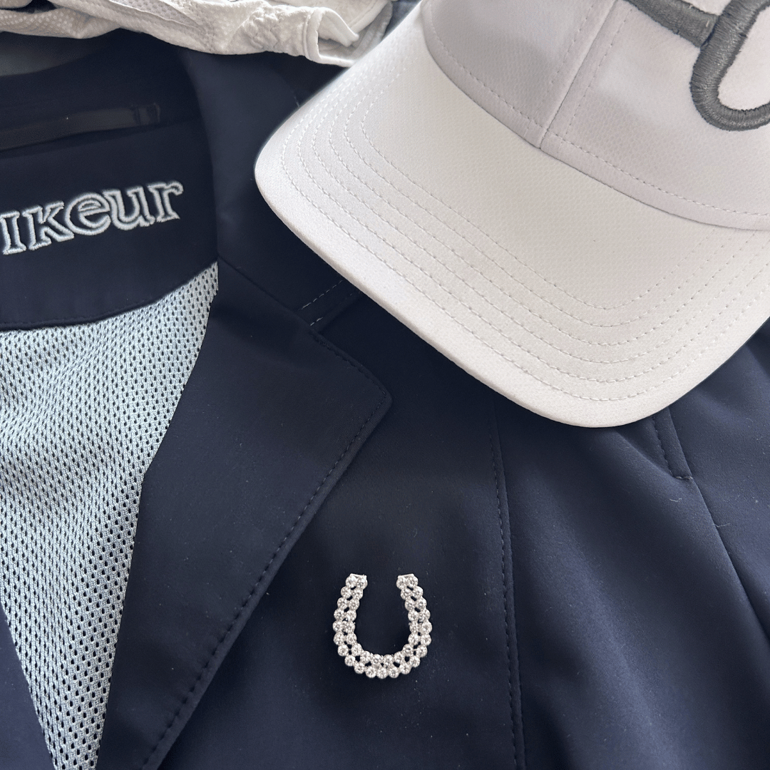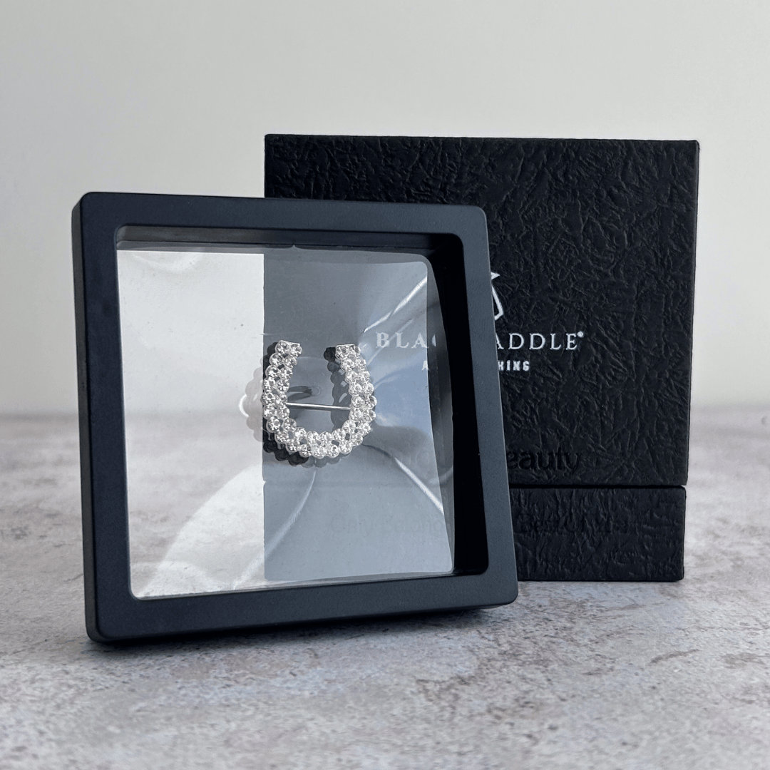 Horseshoe-shaped brooch with colored stones