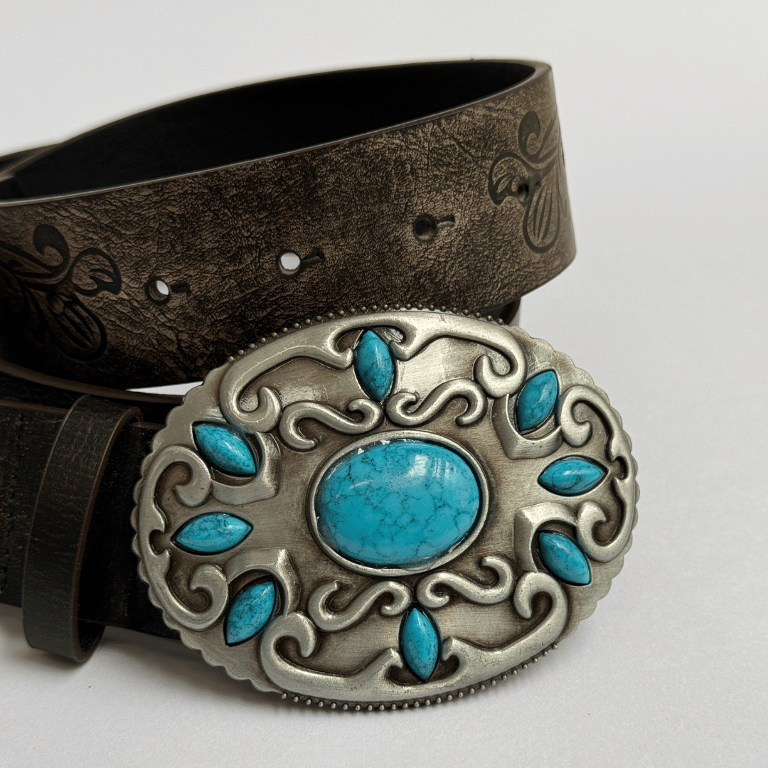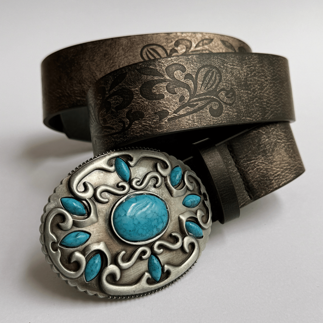 Cinturón con mucha actitud y diseño floral grabado a lo largo