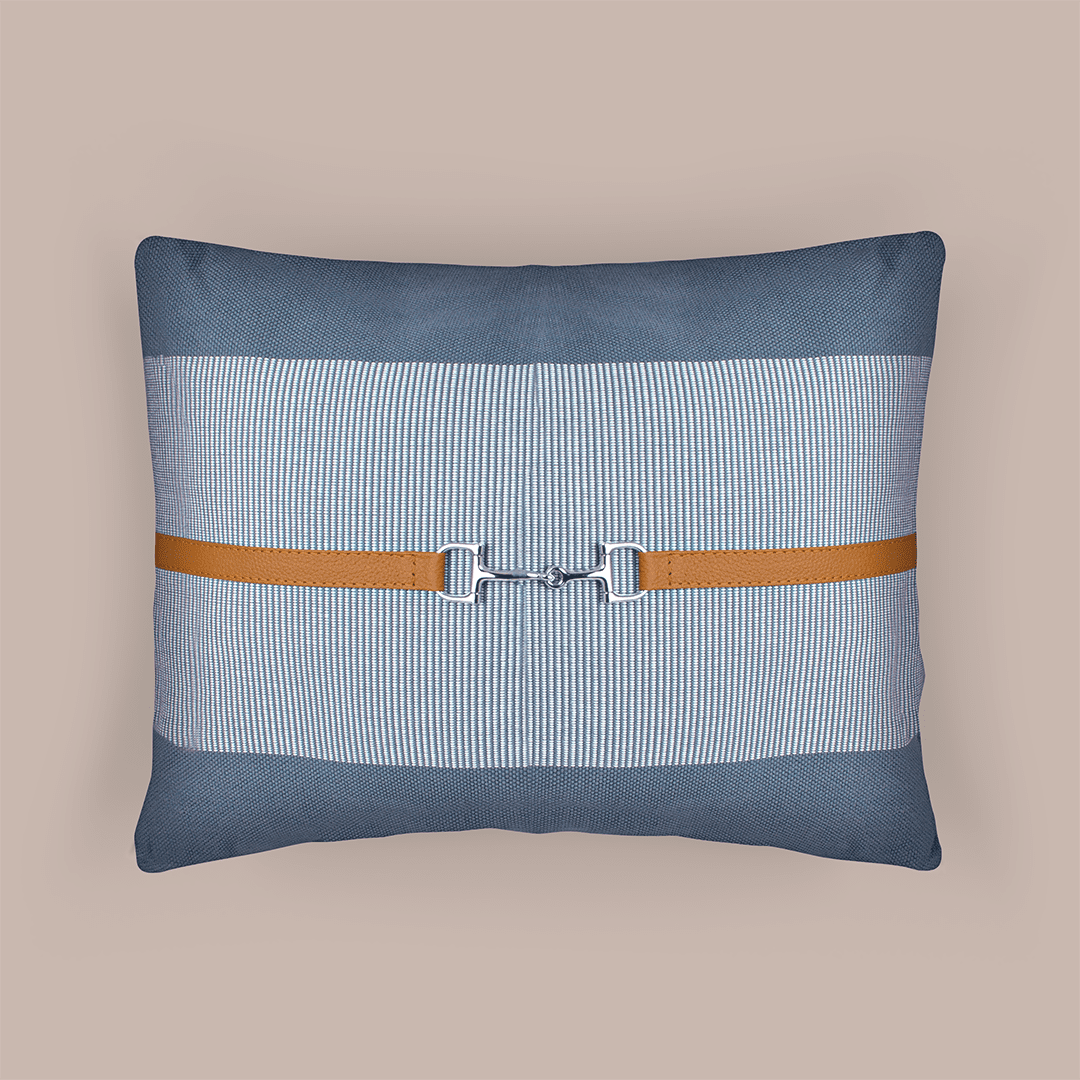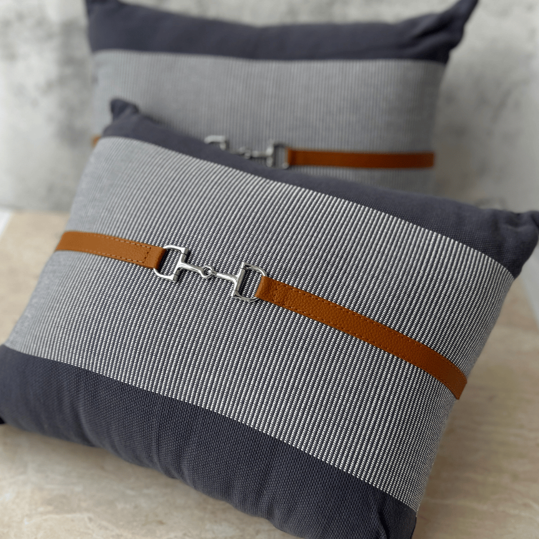 Cojines con aplicaciones de piel y herraje en forma de bocado al centro