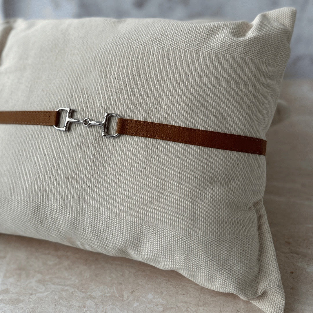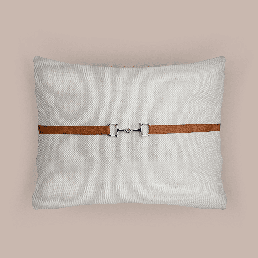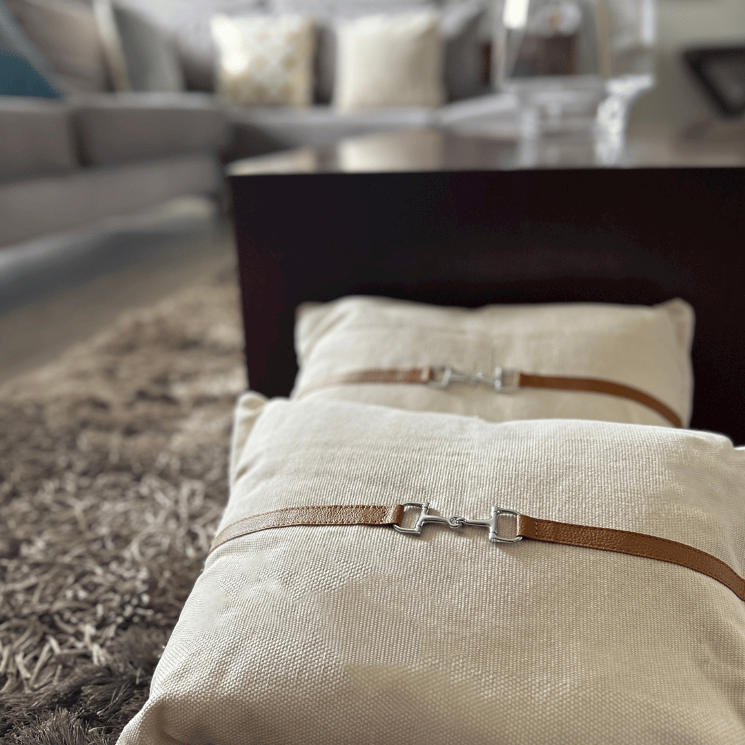 Cojines con aplicaciones de piel y herraje en forma de bocado al centro