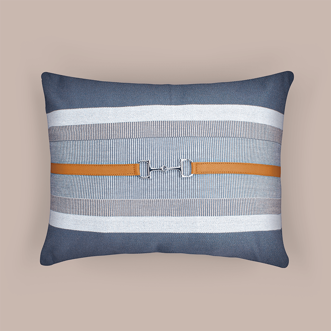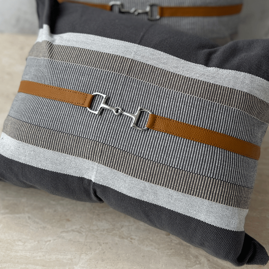 Cojines con aplicaciones de piel y herraje en forma de bocado al centro