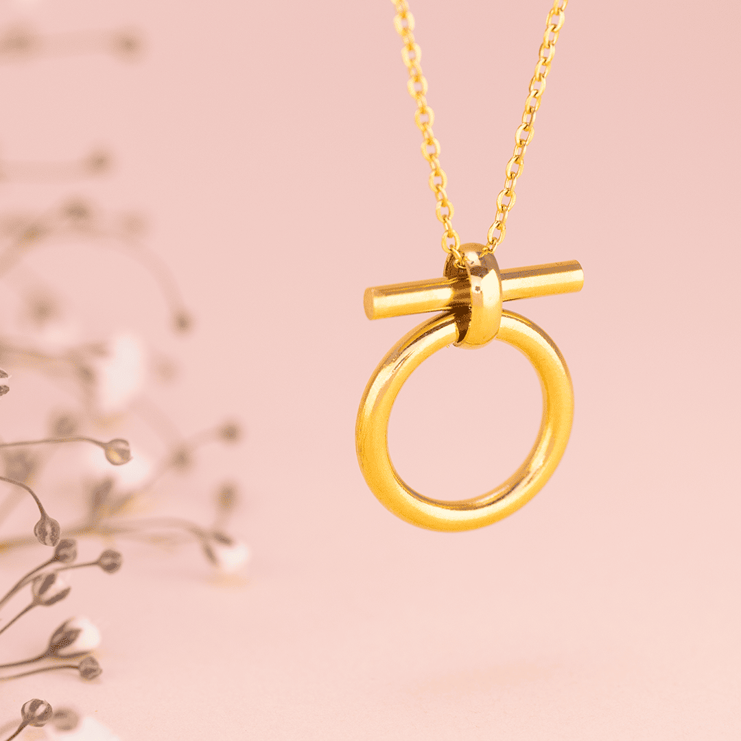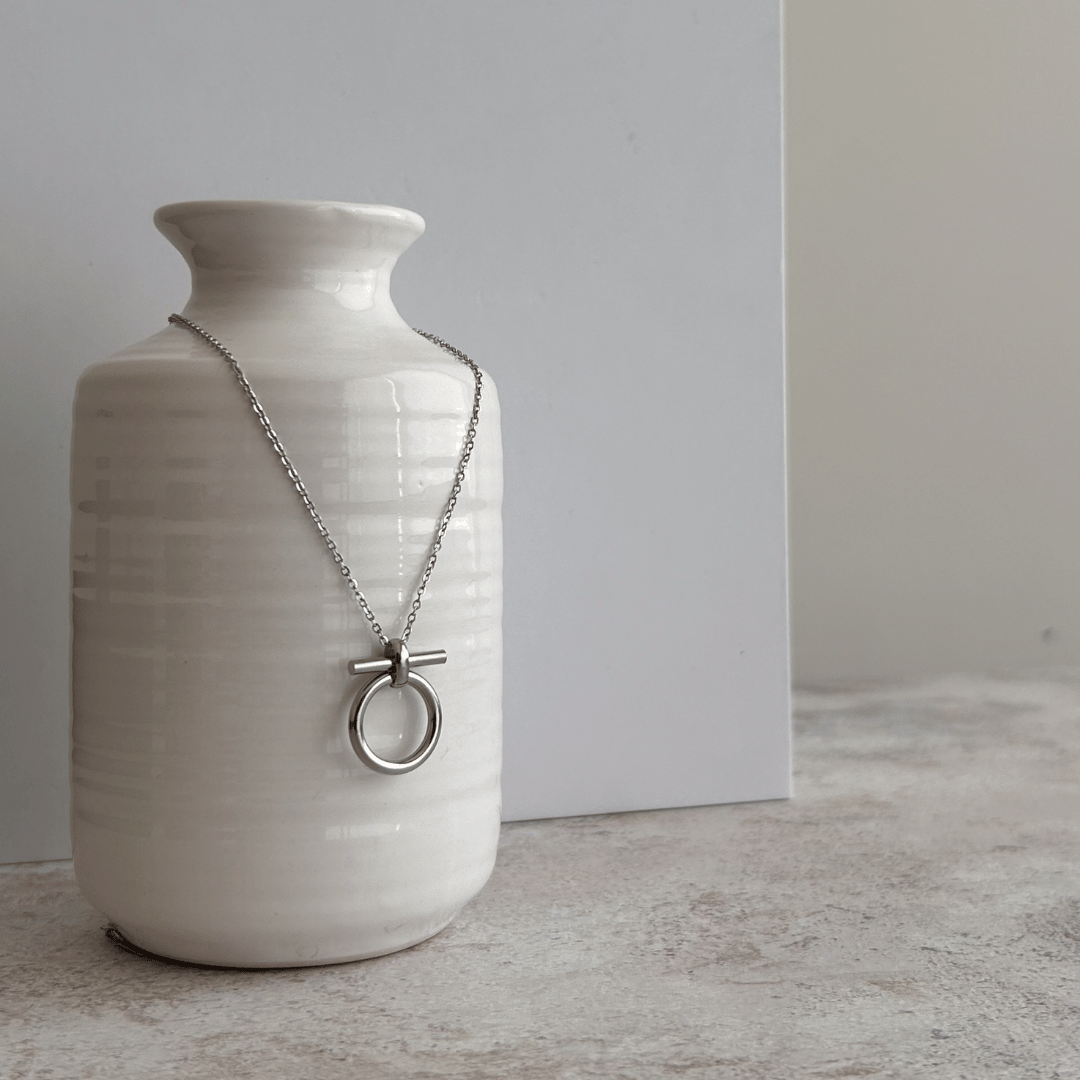 Cadena con dije con diseño de bocado elaborado en acero inoxidable