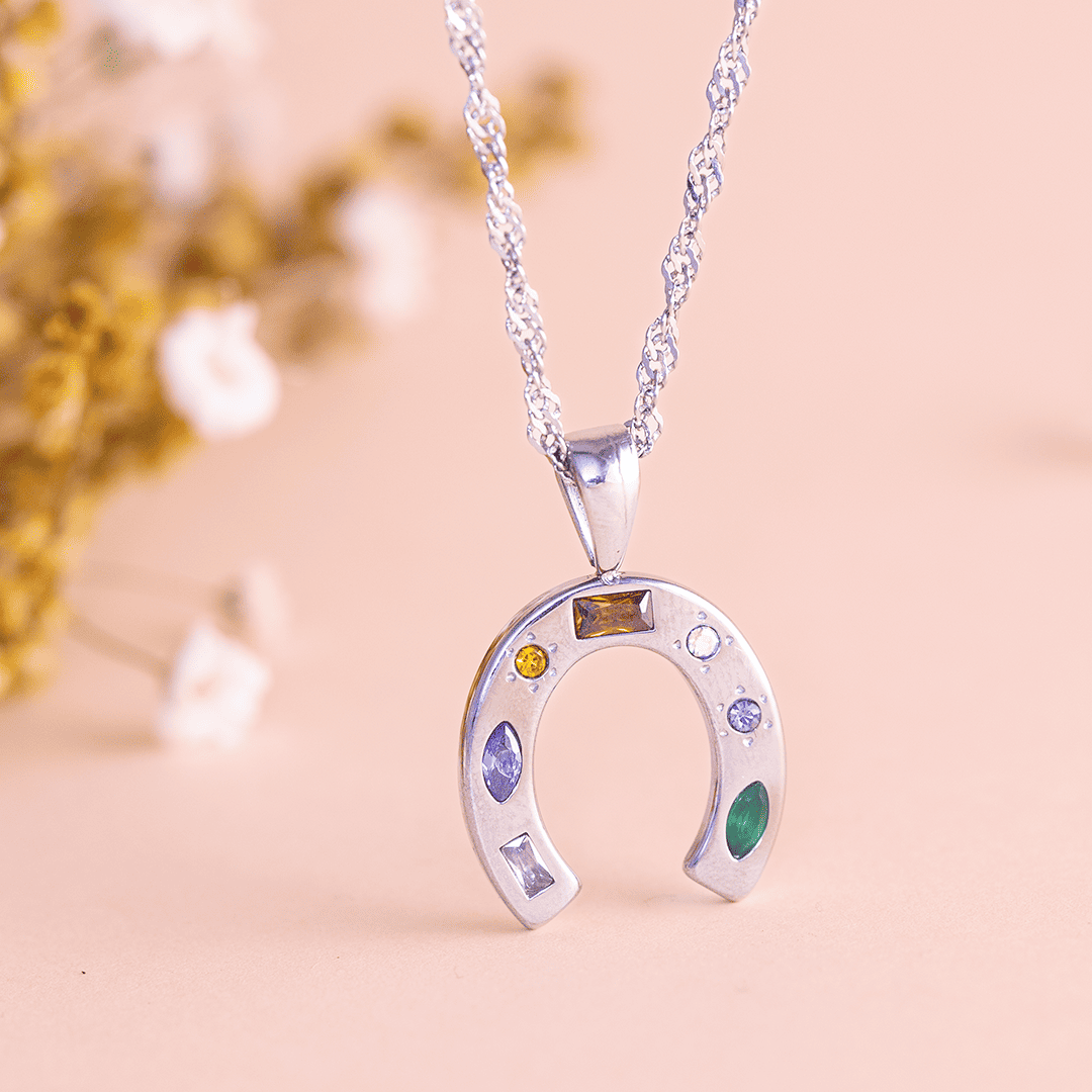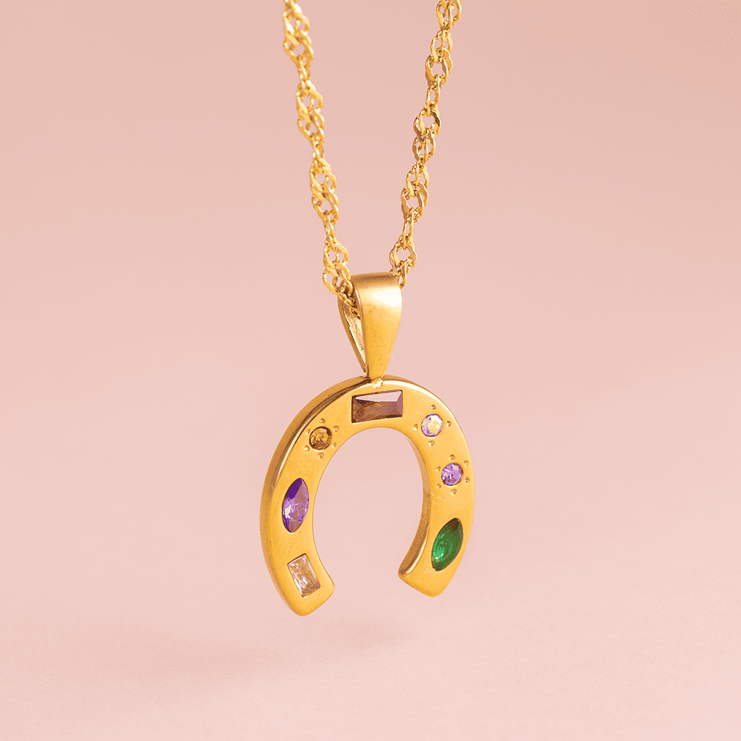 Gargantilla con herradura y cristales de color, cadena tipo torsal