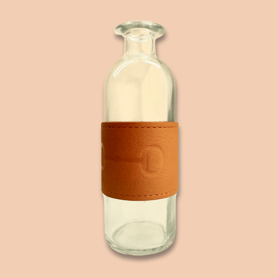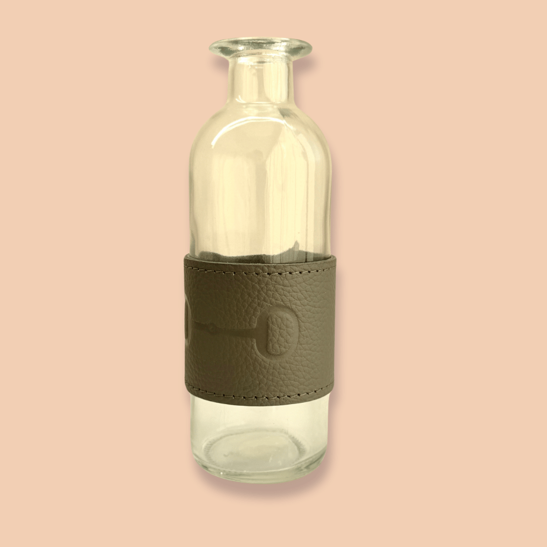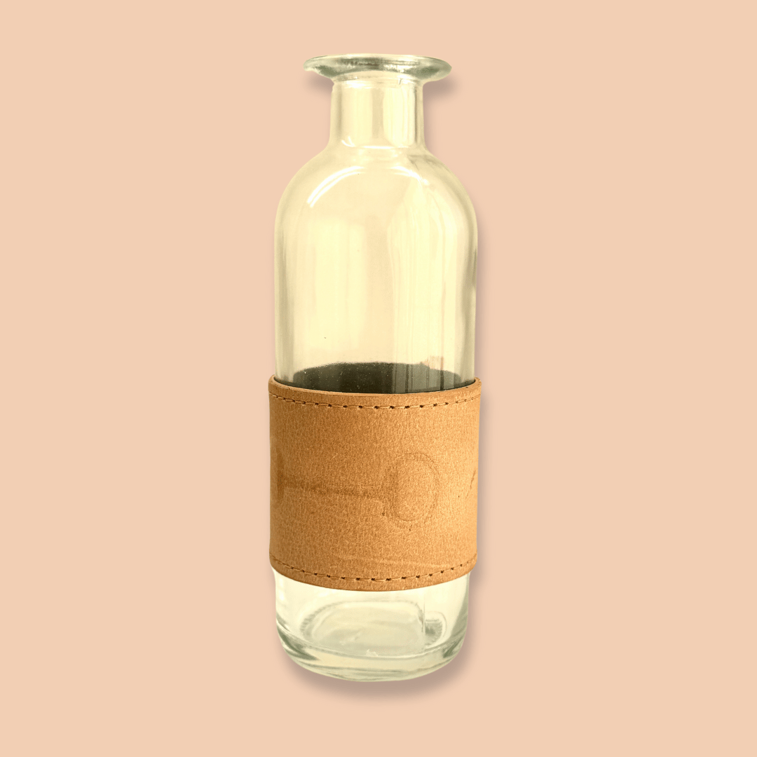 Florero de cristal con fajilla de piel