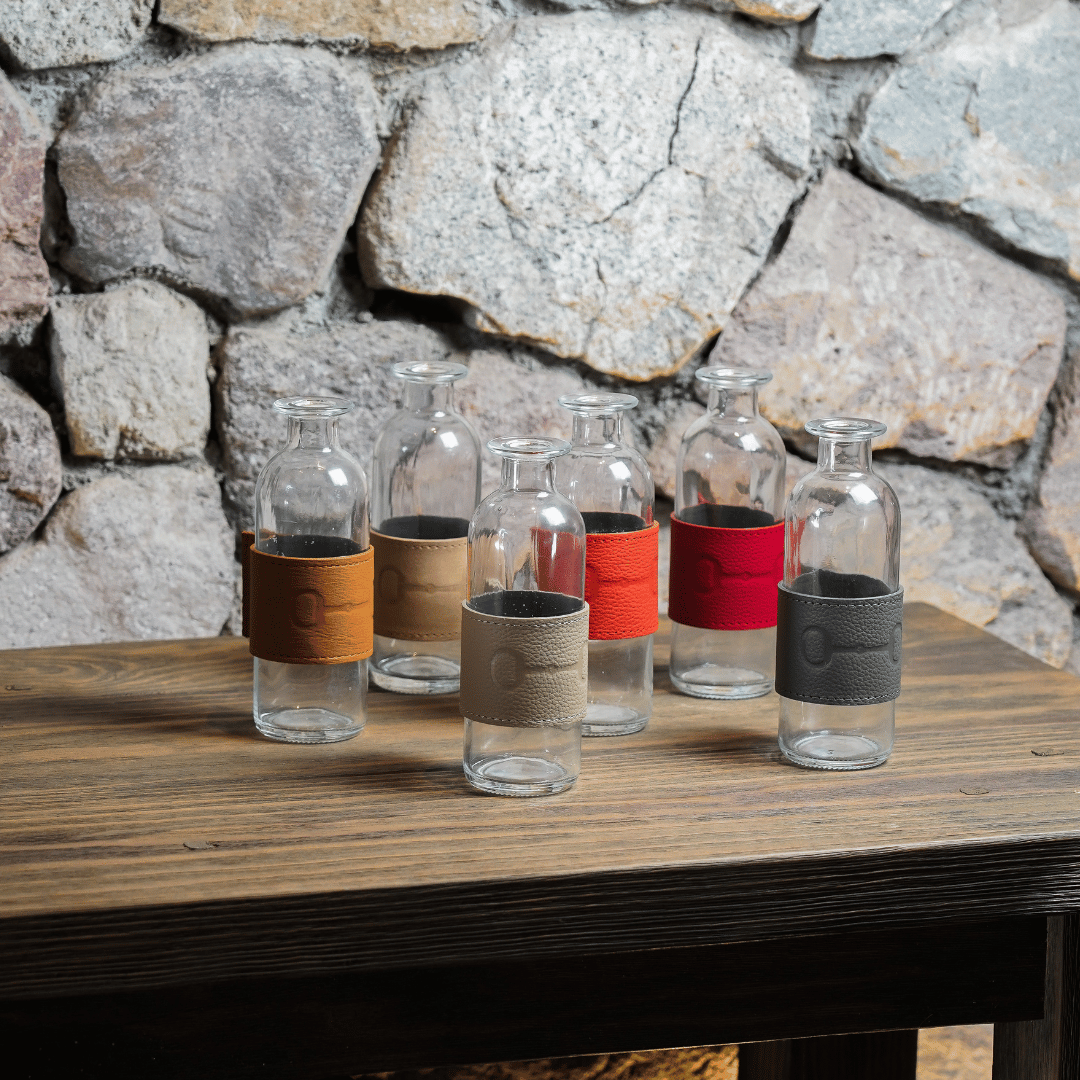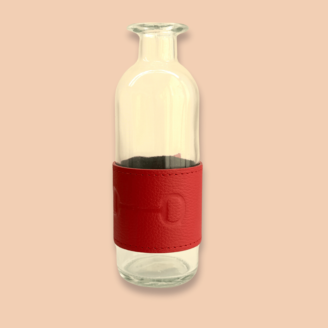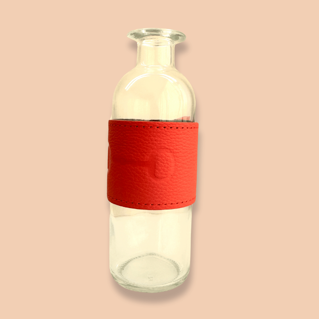 Florero de cristal con fajilla de piel