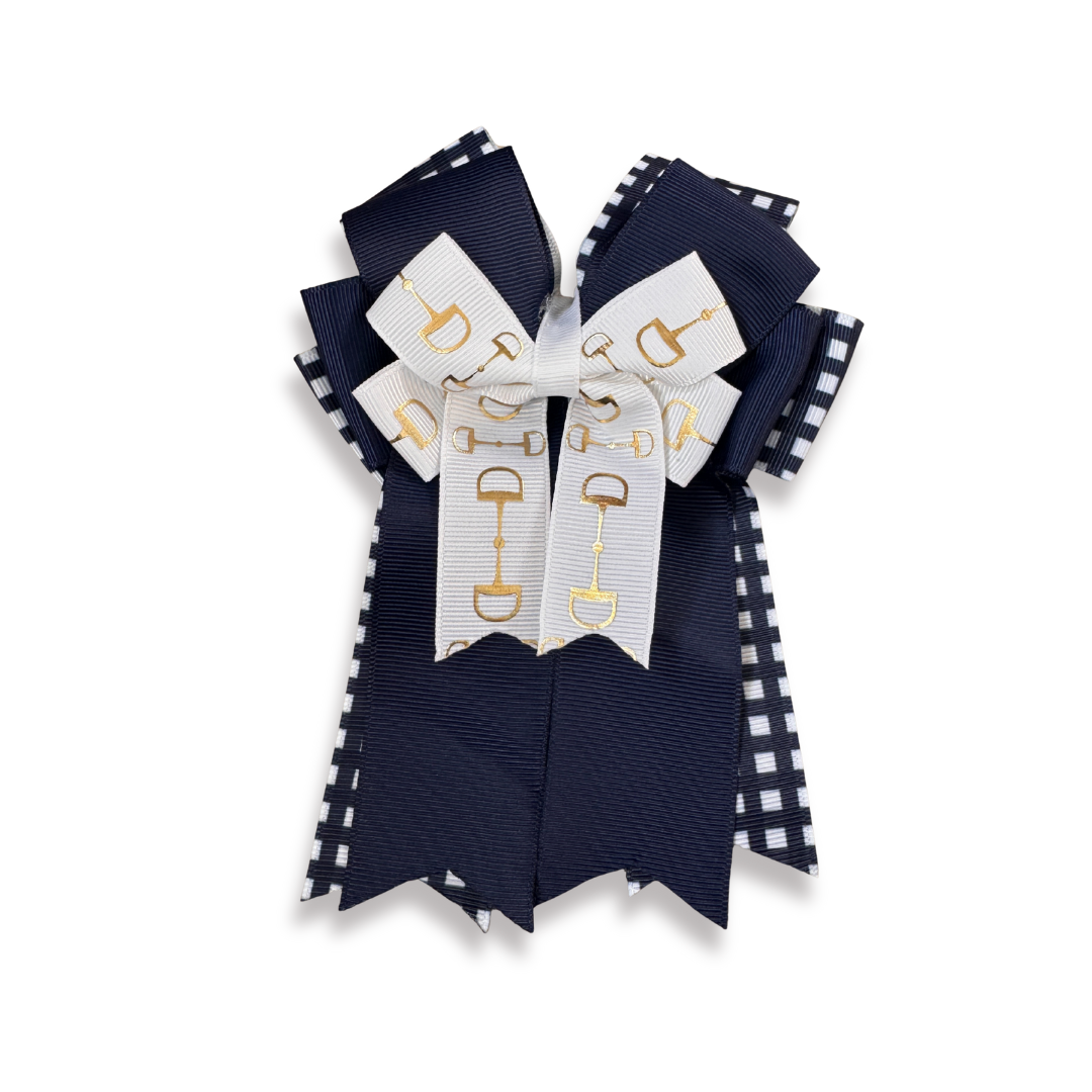 Combinación de listón liso con listón a cuadros y lindos bocaditos en dorado