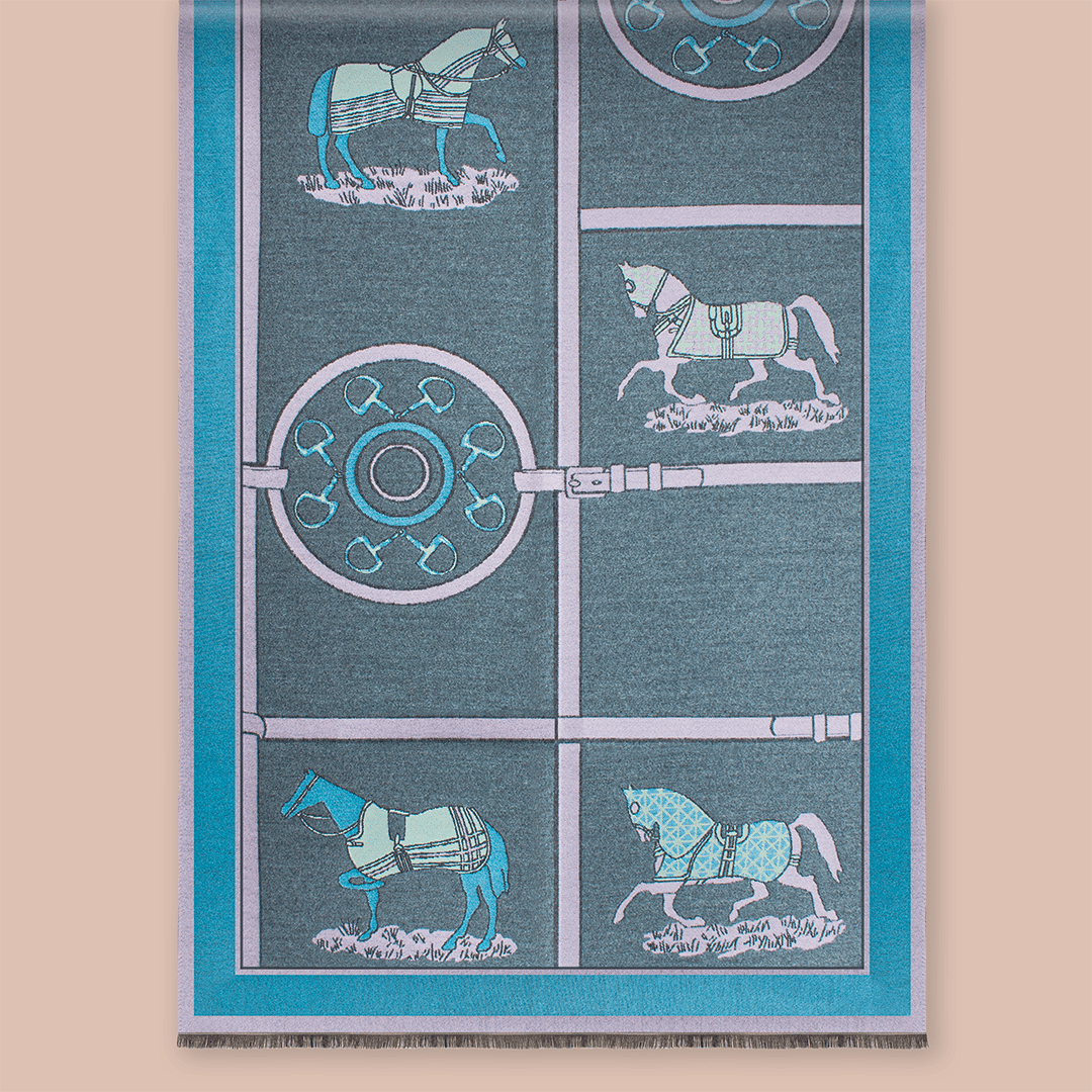 Pashmina con diversos motivos ecuestres