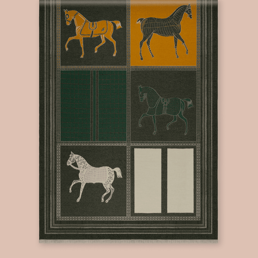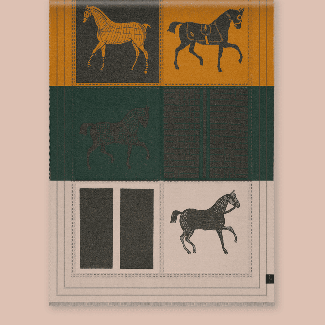 Pashmina con diversos motivos ecuestres