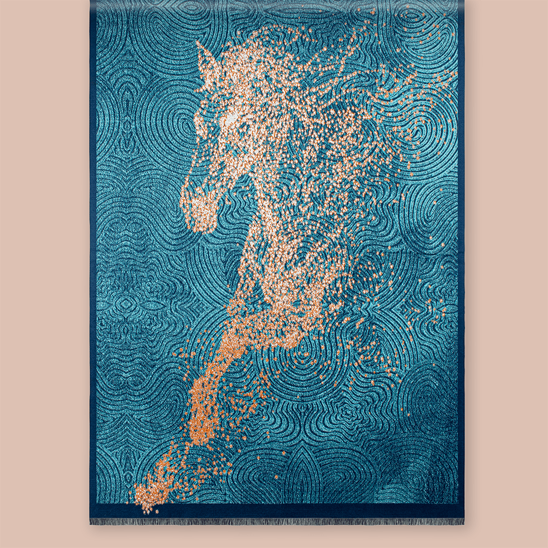 Pashmina con diversos motivos ecuestres
