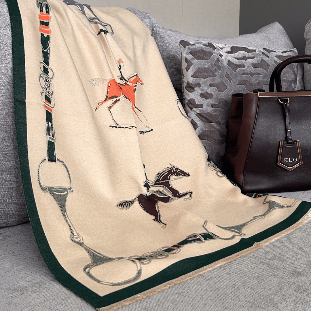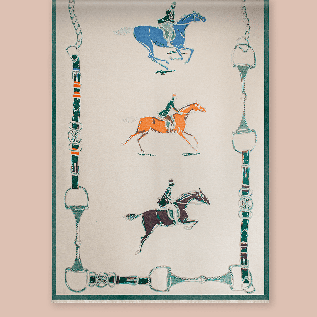 Pashmina con diversos motivos ecuestres
